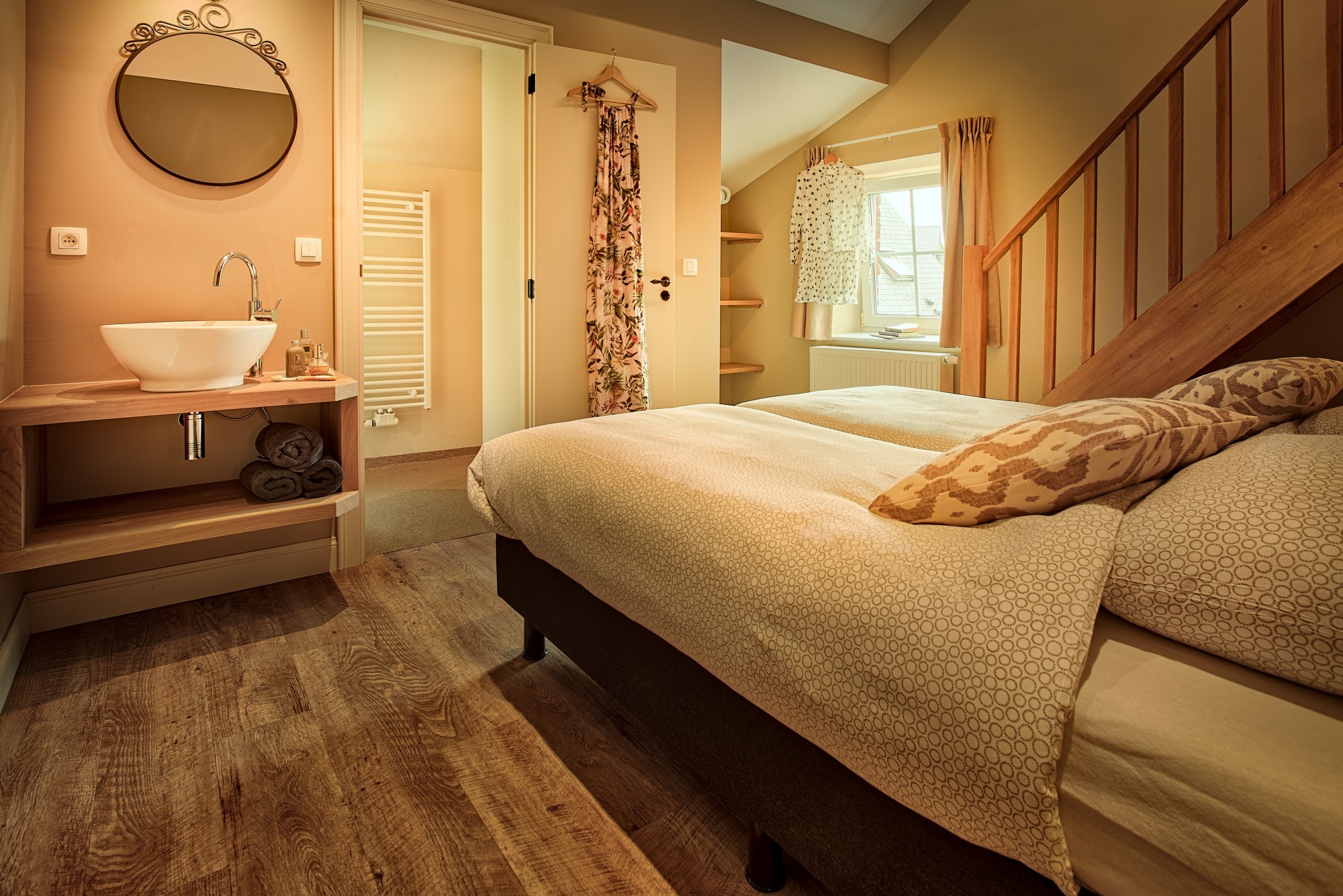 - 5 slaapkamers met 2 eenpersoons boxspring bedden