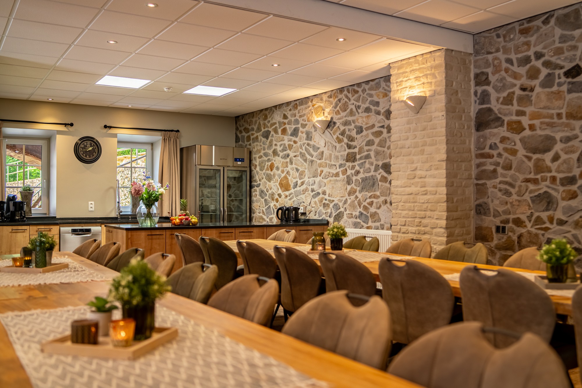 Op zoek naar een luxe groepsaccommodatie voor 30 personen in de Ardennen? Dan is ons Molenhuis echt iets voor u! Deze karakteristieke groepsaccommodatie in de voormalige molen is van werkelijk alle gemakken voorzien. U betreedt de woning in de ruime, open leefruimte. Hier vindt u een sfeervol zitgedeelte met grote flatscreen TV, open haard, een volledig uitgeruste, open keuken en 3 lange eettaffels. De vakantiewoning heeft 12 slaapkamers met eigen badkamer. Er is zelfs een lift en invalidentoilet aanwezig voor de minder valide gast. Kom en geniet van dit mooie huis, de natuur en mekaar.